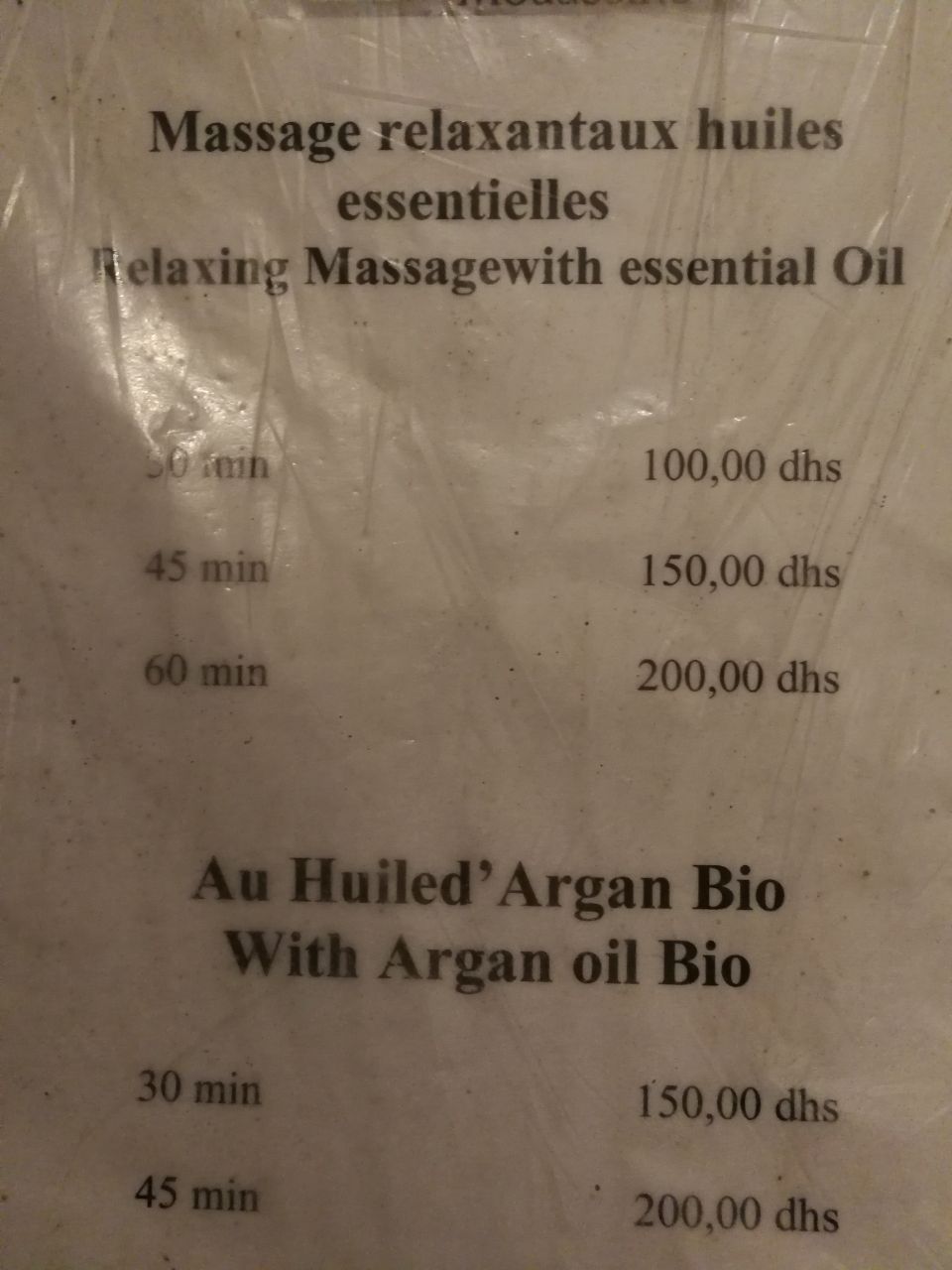 Zusätzlich zur Formel entscheide ich mich für eine 30-minütige Massage für einen Aufpreis von 100 dh.