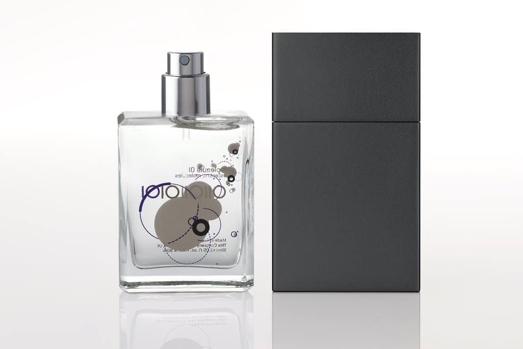 Nun, an diesem Punkt wollen Sie wahrscheinlich den Namen des Parfüms wissen. Es ist Molecule 01 von Escentric Molecules, 2006 von Geza Schoen geschaffen. Im Gegensatz zu anderen Düften, die mehrere Noten haben, besteht dieser aus nur einer Zutat (+ Alkohol + Wasser, natürlich): dem synthetischen Molekül Iso Gamma Super (eine weiterentwickelte Version von Iso E Super), in seinem reinsten Zustand.