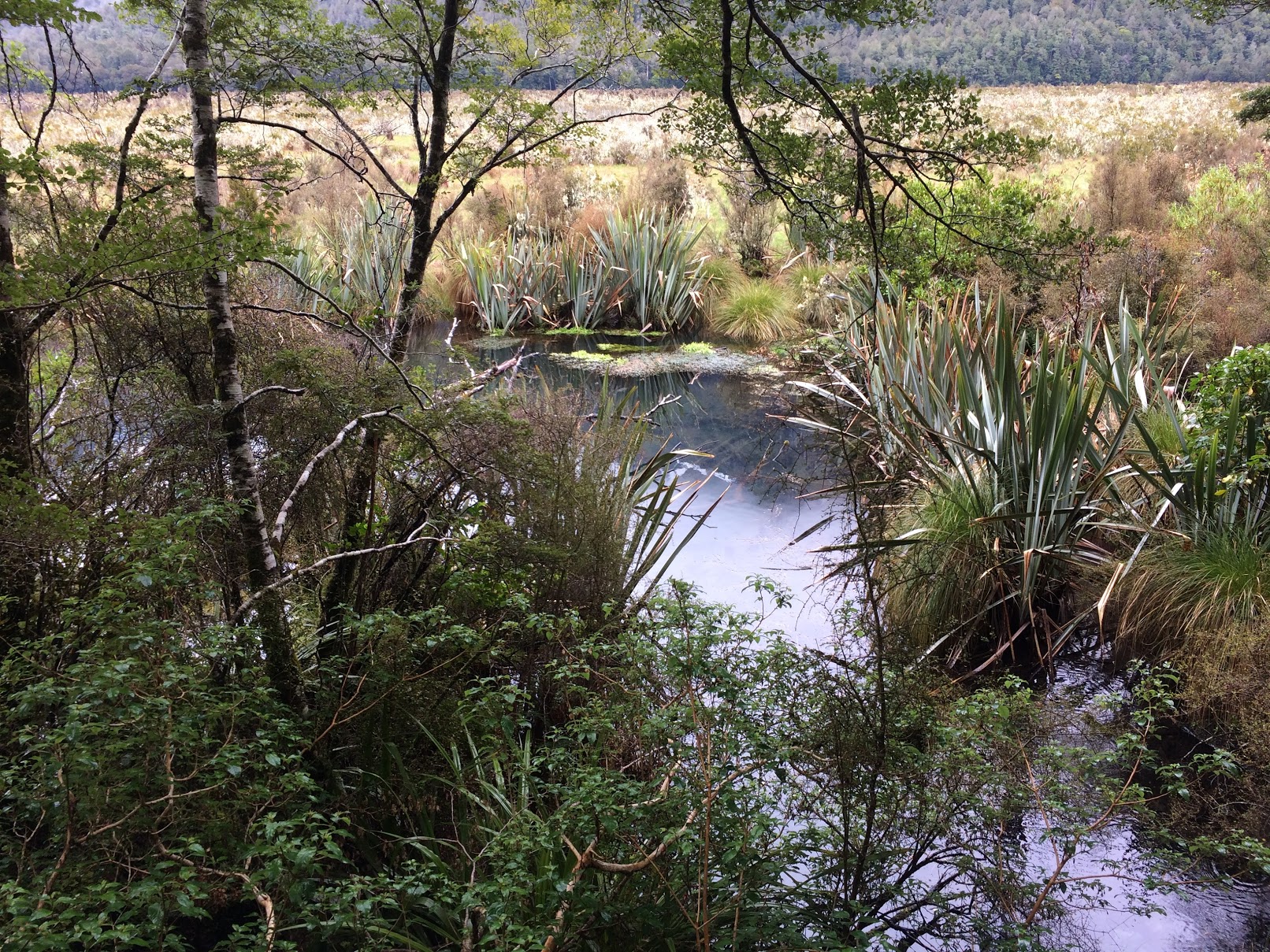 Wir nehmen die umgekehrte Route, nach Queenstown. Wir halten an den Aussichtspunkten, die wir heute Morgen verpasst haben: Mirror Lakes (weniger schön, wenn es hässlich ist), und verschiedene Aussichtspunkte, die für Fotos reserviert sind