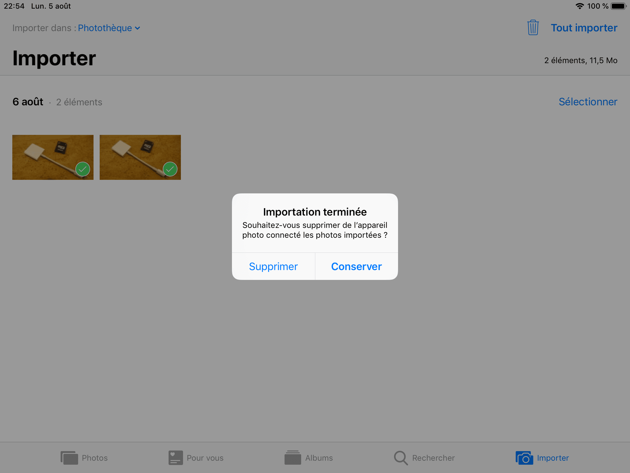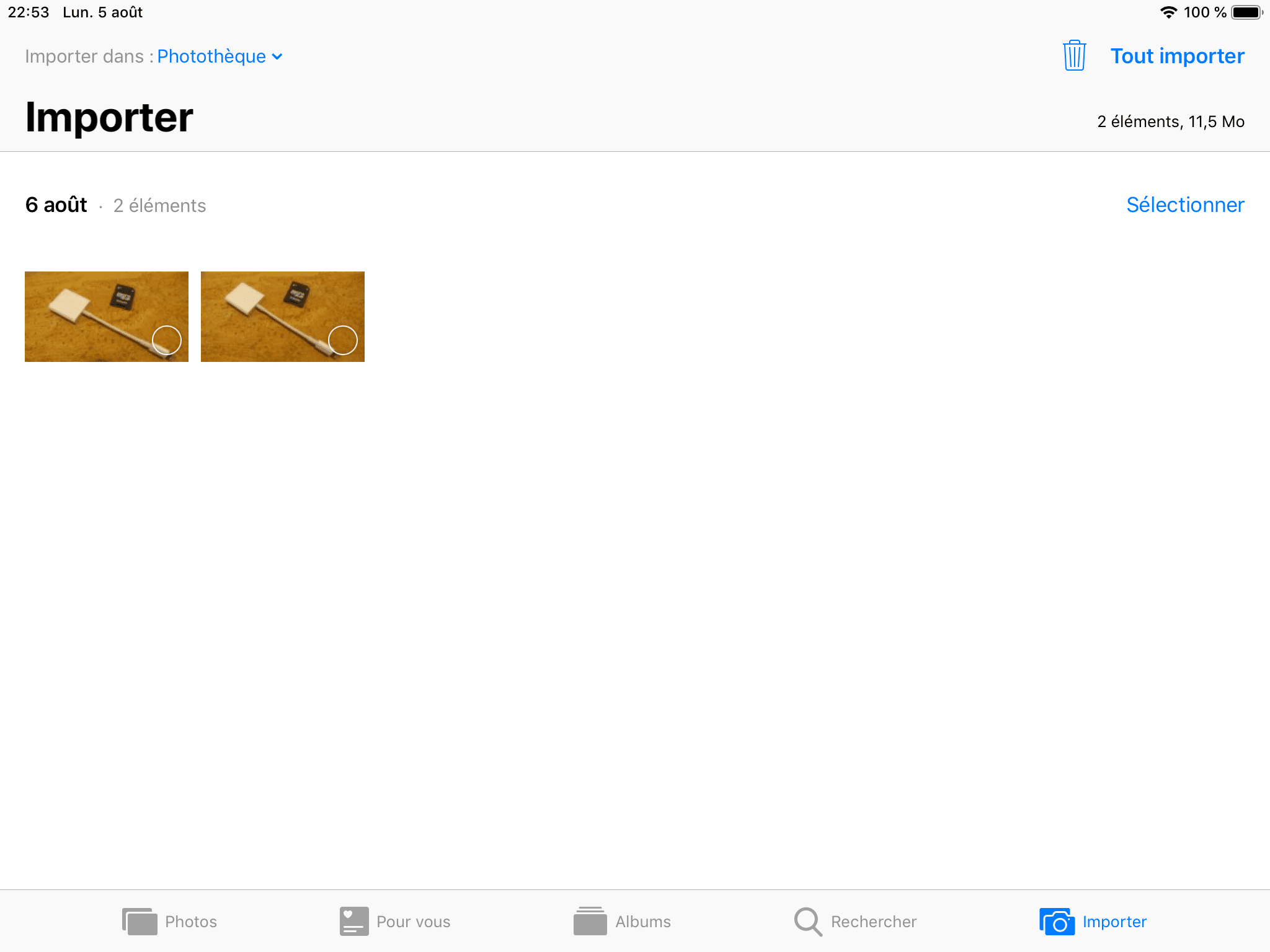 Es gibt einen offiziellen Apple-Adapter, den „Lightning to SD card reader adapter“. Wie alle Adapter kostet er einen Arm: 35 € für ein kleines Stück Plastik.