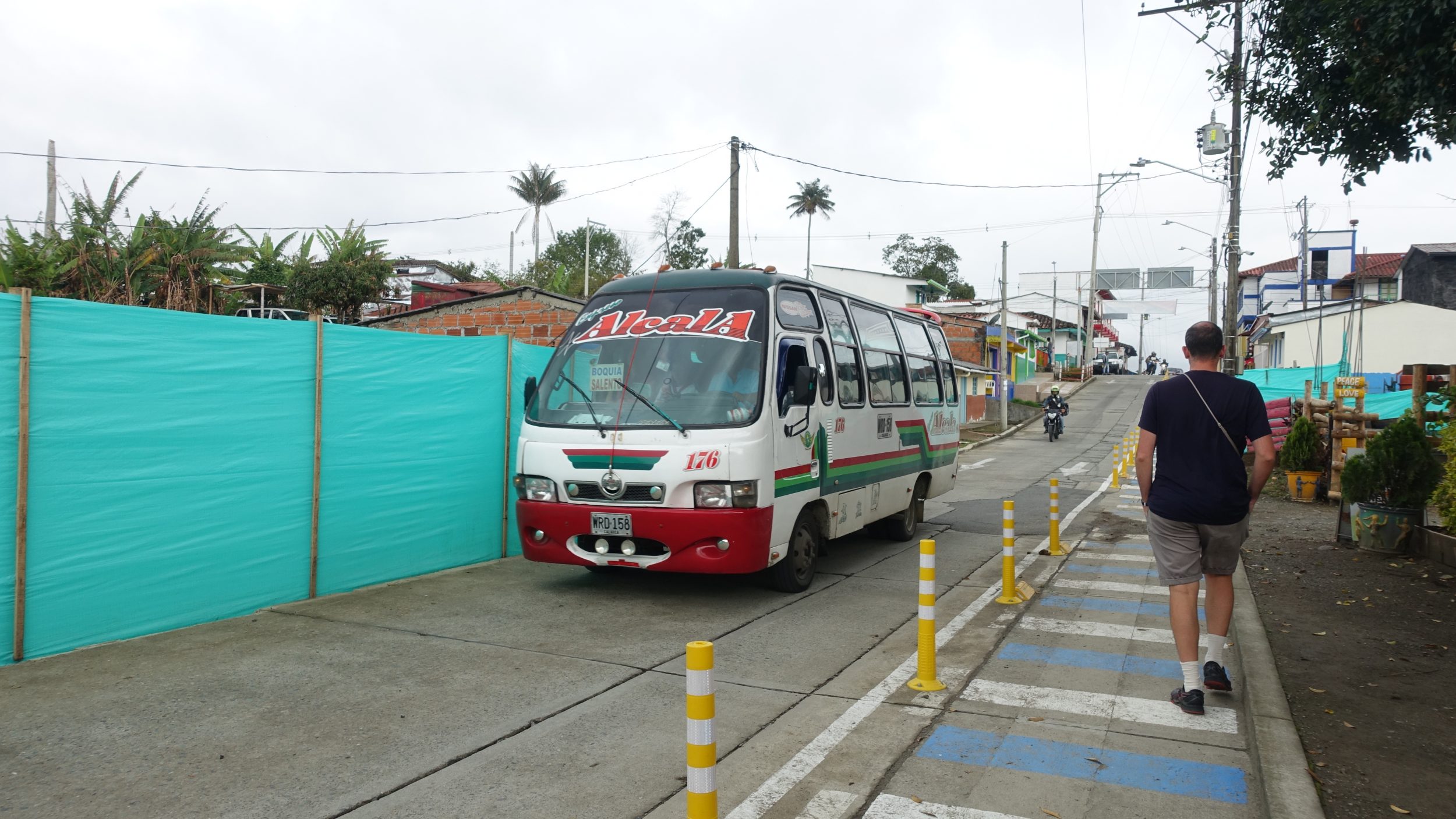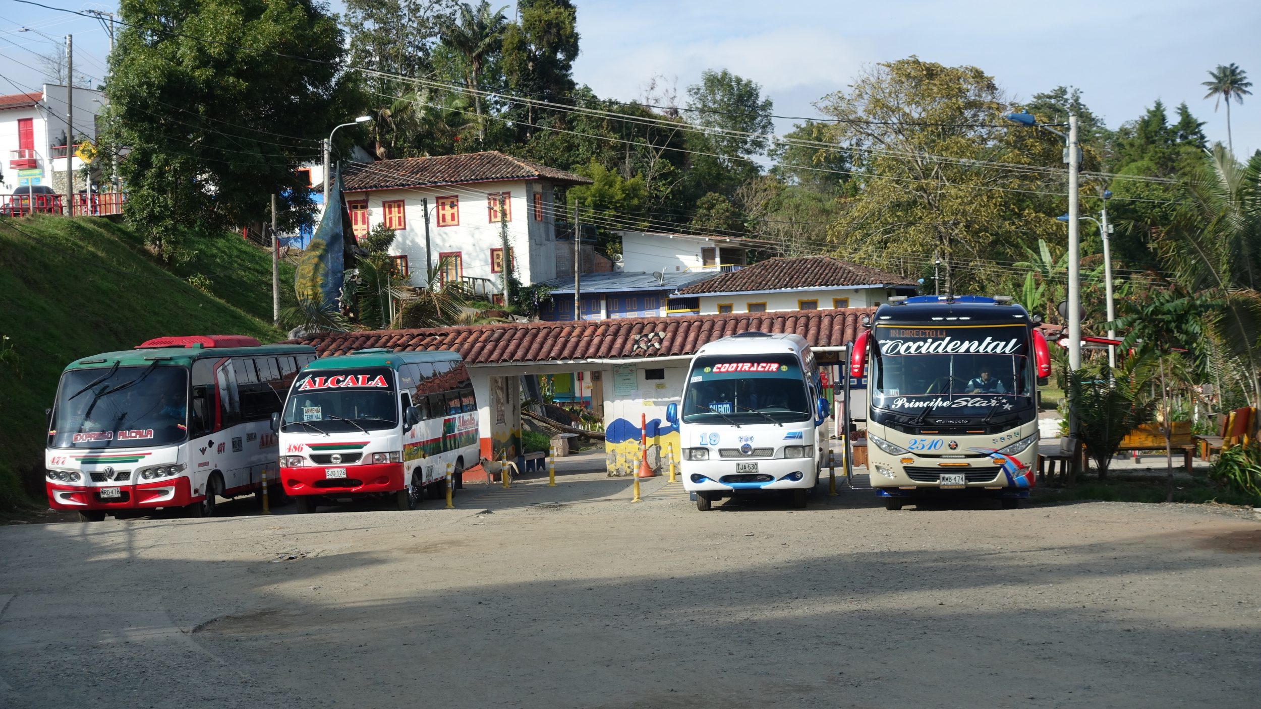 Der Bus hält unterwegs in Filandia, Boquia, am Busbahnhof von Salento und dann auf dem Hauptplatz.