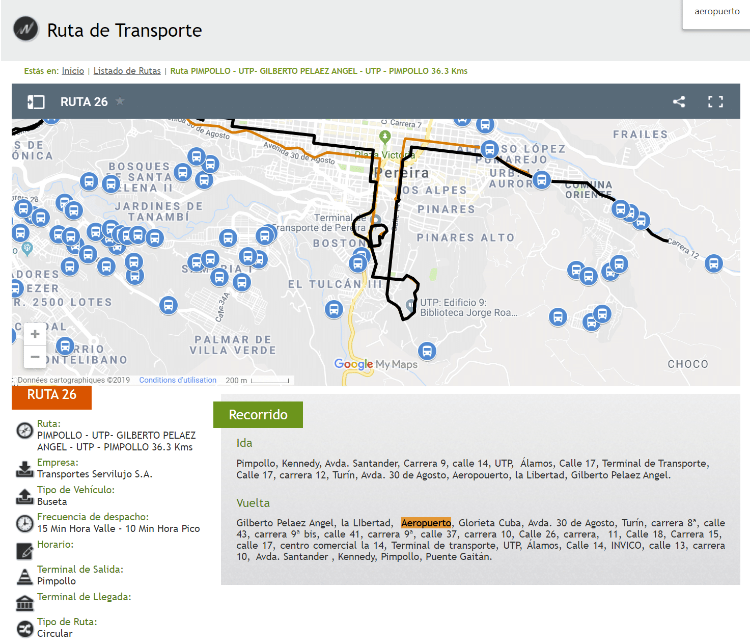 Schritt 1: Flughafen Pereira => Transportterminal Pereira