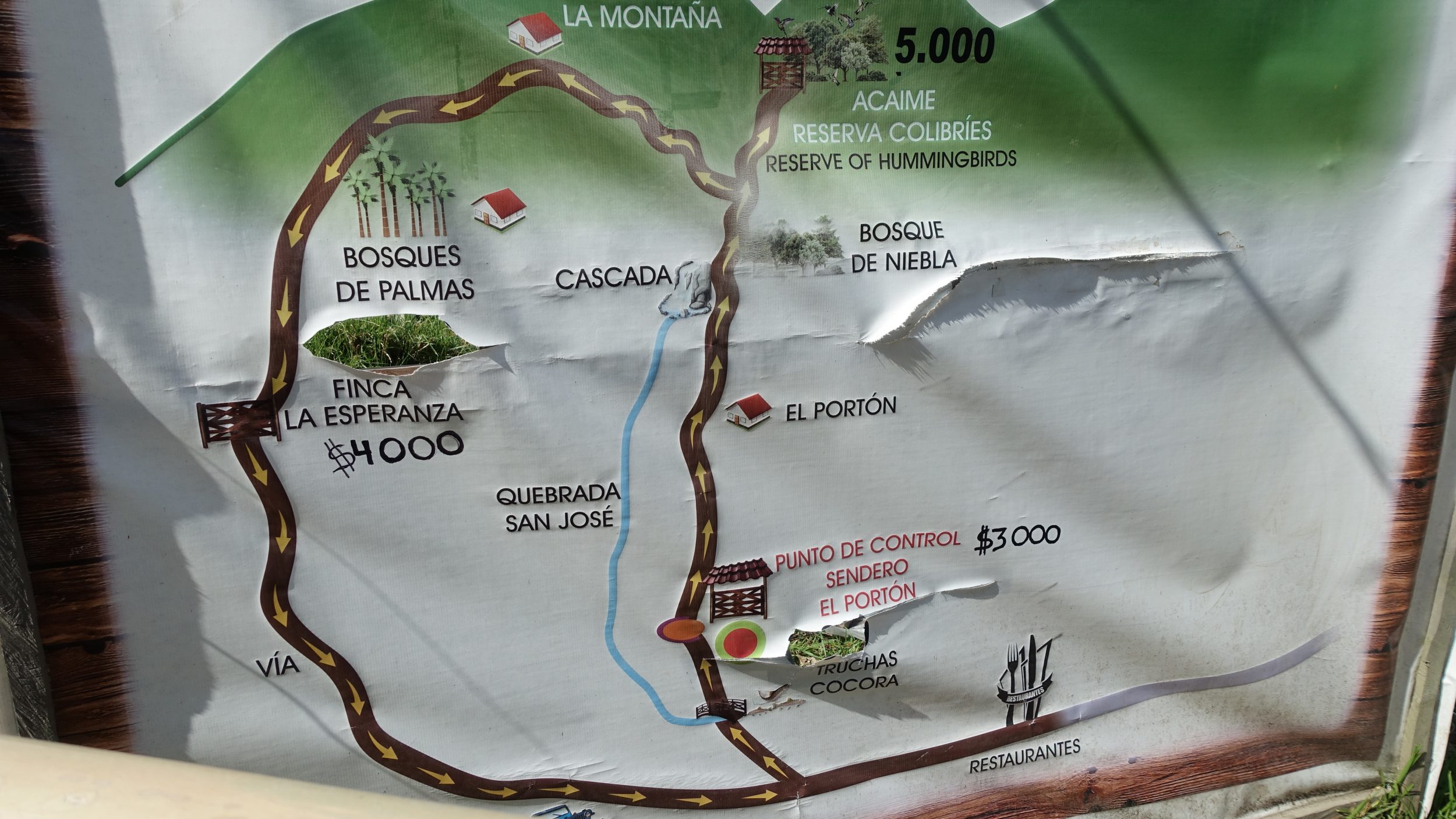Option 3: 4h52mn Minimum. 9,1km. Wichtiger Höhenunterschied (560m) vor allem zwischen der letzten Brücke und der Finca la Montana. Kosten 7000COP/Person