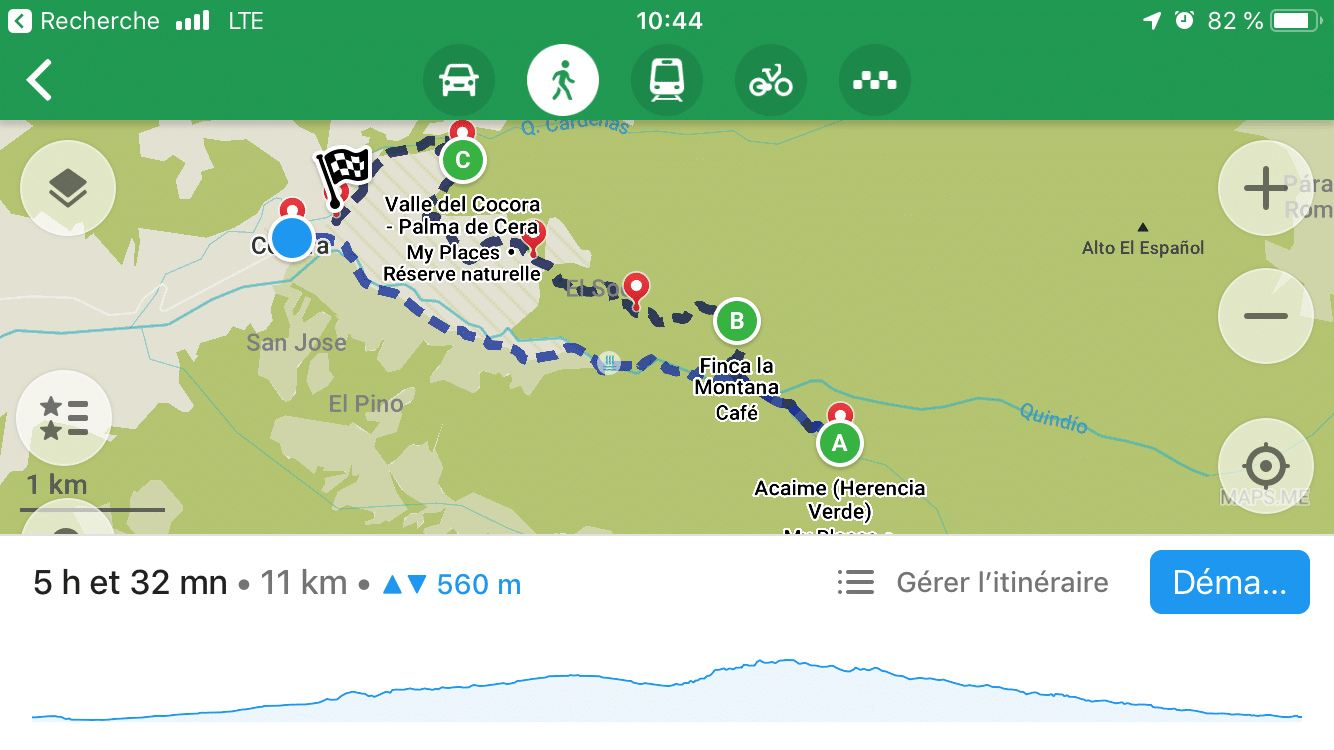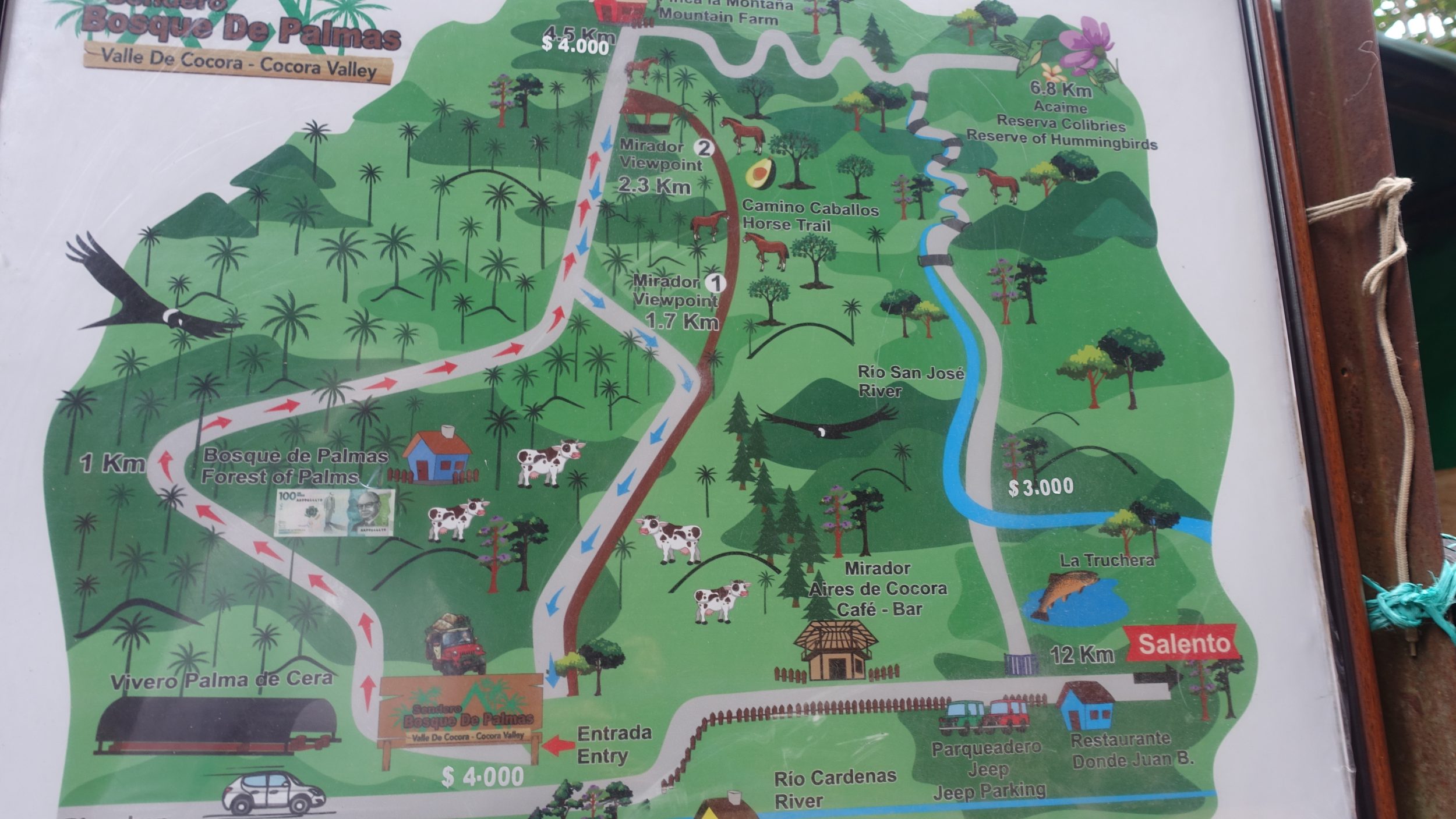 - Sie beginnen mit dem Besuch des Palmenwaldes (A) El bosque de las palmas – die meisten kolumbianischen Touristen halten dort an und drehen um