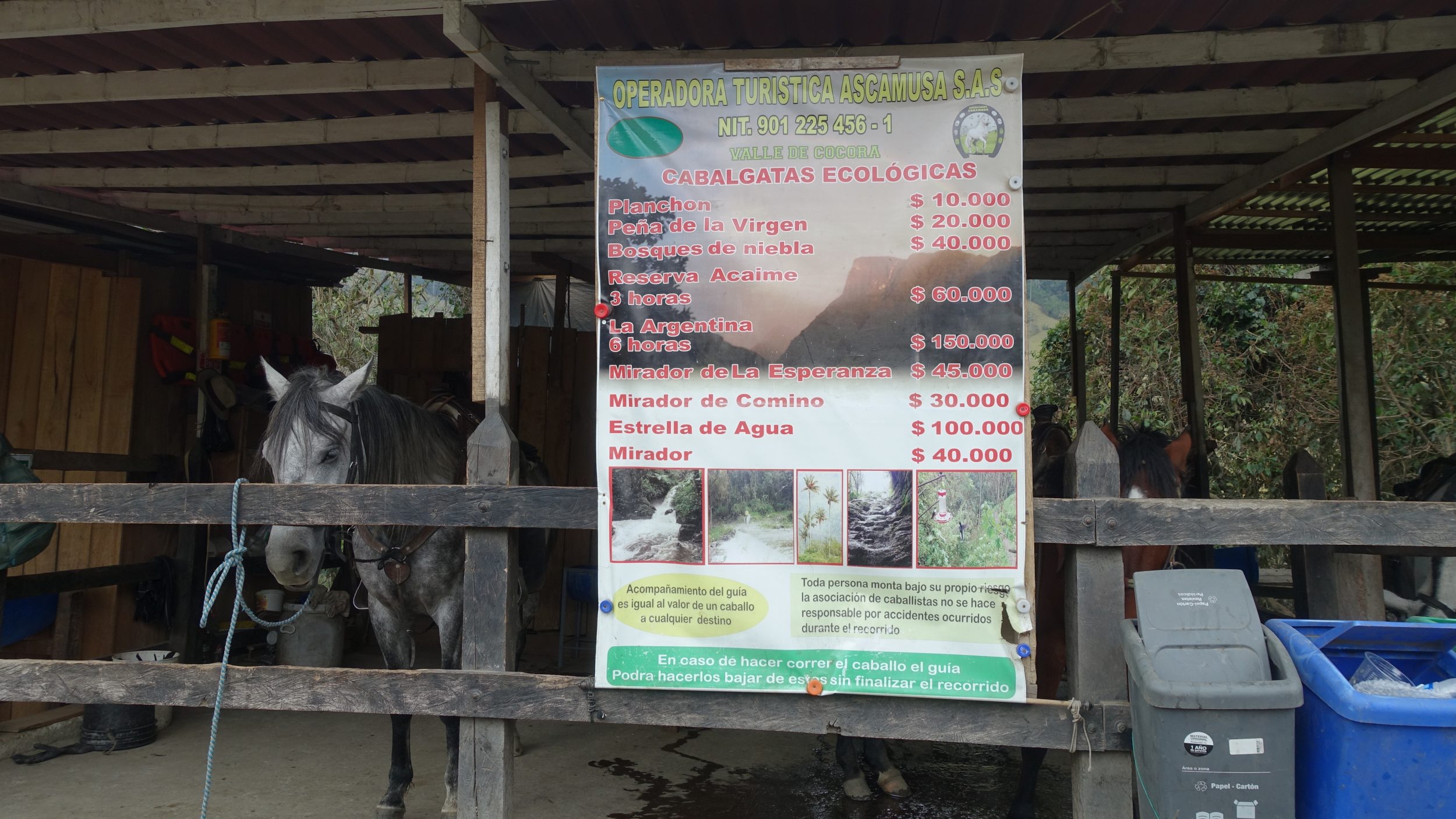 Viele Touristen bevorzugen diese Option. Hier sind die Preise für 2019, zählen Sie 20.000COP/Stunde. Ein Führer wird Sie und das Pferd zu Fuß begleiten.