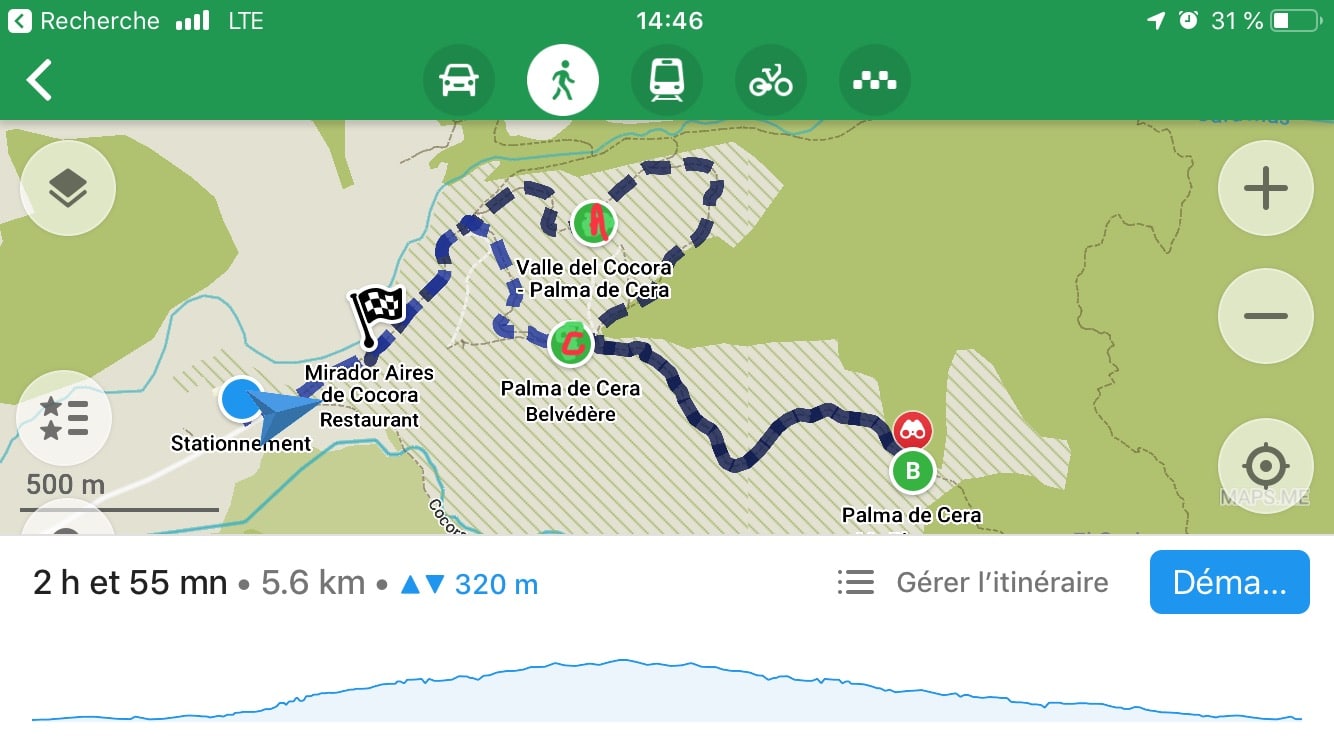 - Öffnen Sie während der Wanderung regelmäßig maps.me, um sicherzustellen, dass Sie dem richtigen Weg folgen