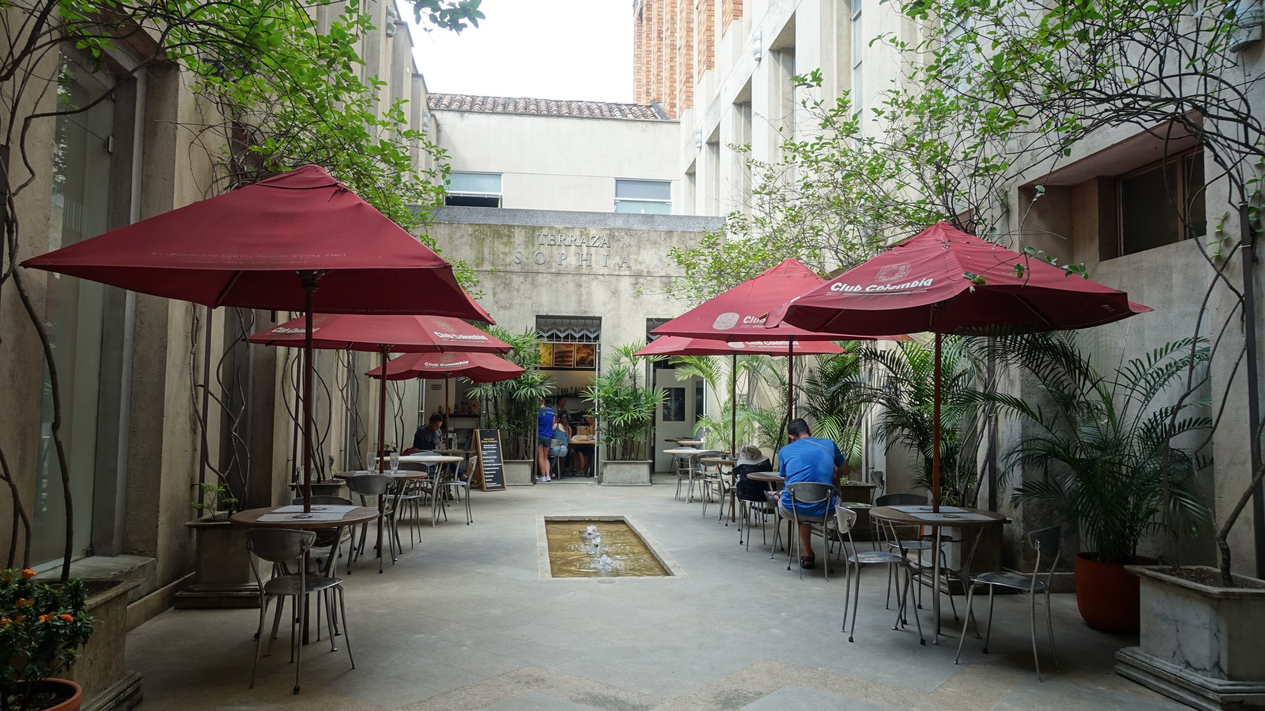 Philippe ist zu glücklich, um all diese Stände mit Schmuck und Halbedelsteinen zu sehen, das ist genau sein Stil. Während er sich beim Einkaufen austobt, trinken wir in aller Ruhe etwas im Museumscafé: Museo de Antioquia. Der Eintritt in das Museum kostet 18.000COP, aber man kann auch einfach nur ins Café gehen, ohne zu bezahlen. Was für eine Oase der Ruhe nur ein paar Meter vom Trubel des Platzes entfernt!