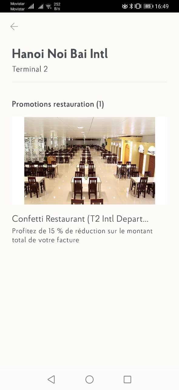 Schließlich können Sie die verfügbaren Angebote sehen, wie z.B. dieses Restaurant im Flughafen von Hanoi, wo Sie 15% Rabatt erhalten können.