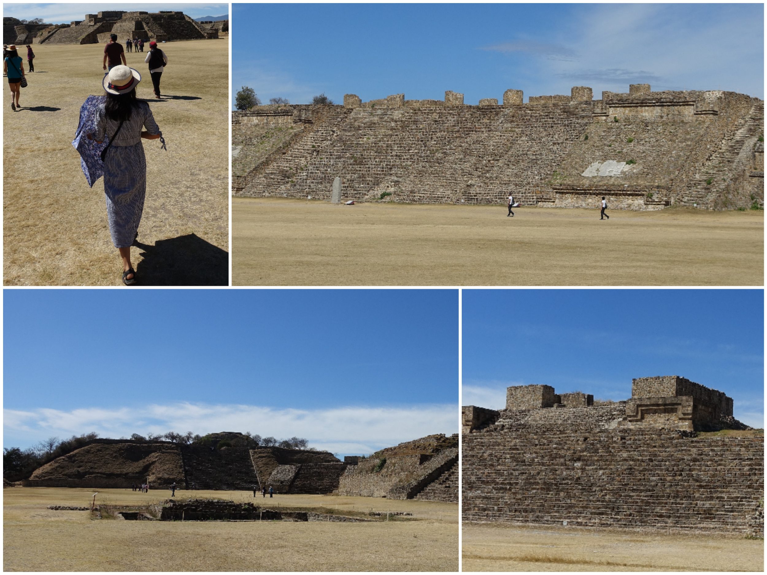 Unser Führer ist Zopatheque. Er ist zweisprachig und wechselt mühelos von Spanisch zu Englisch. Seine Erklärungen sind sehr interessant, was mich die Unannehmlichkeiten vor der Tour vergessen lässt. Er begleitet uns für 40 Minuten (80MXN/Eintritt/Person, nicht im Tourpreis enthalten) und lässt uns 1 Stunde vor Ort, um auf eigene Faust zu erkunden. Geografisch gesehen liegt die Region Oaxaca wirklich in der Mitte Mexikos, und Monte Alban befindet sich im Zentrum dieser Region, inmitten des Pazifischen Ozeans und des Golfs von Mexiko. Kein Wunder, dass es zur Zeit der Zopatheken so bevölkert war. Die Strukturen sehen einfach aus, aber darunter befinden sich komplexe Wasserverteilungsnetze und einige Ruinen sind so platziert, dass sie zu einem bestimmten Zeitpunkt nach der Sonne ausgerichtet sind.