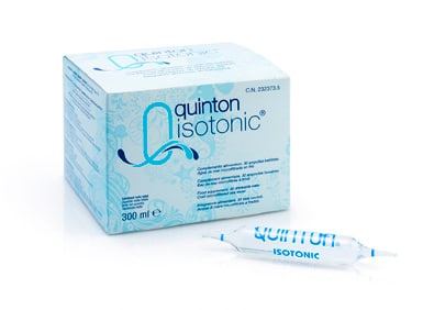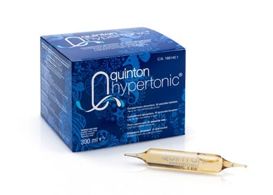 Damit das aus dem Meer entnommene Meerwasser tatsächlich dem Blutplasma ähnelt (ca. 33g/L Salz im Meerwasser vs. 9g/L im Blut), muss es mit Quellwasser gemischt werden und es gibt fertige Lösungen, die in Form von Ampullen verkauft werden: 71% Süßwasser, 29% Meerwasser. Dies ist die Quinton isotonisch® 30 Fläschchen à 10 ml. Die Version Quinton hypertonisch® das 100 % Meerwasser enthält, ist natürlich viel salziger, liefert aber einen größeren Energieschub. Sie können sie leicht in der Apotheke oder online(zum Beispiel hier) finden.