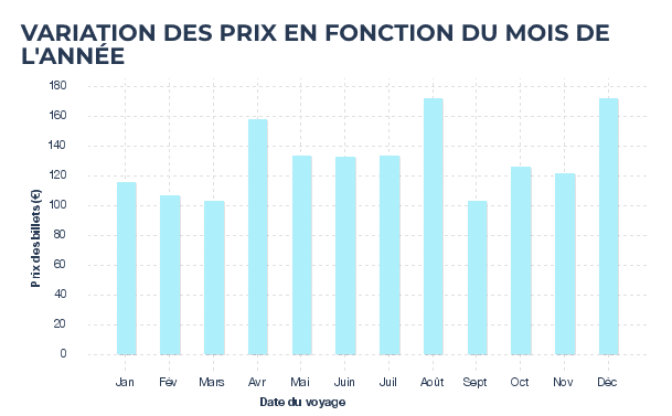 Algofly zeigt auch den Durchschnittspreis pro Monat an, da die Preise während der Ferienzeit natürlich höher sind.