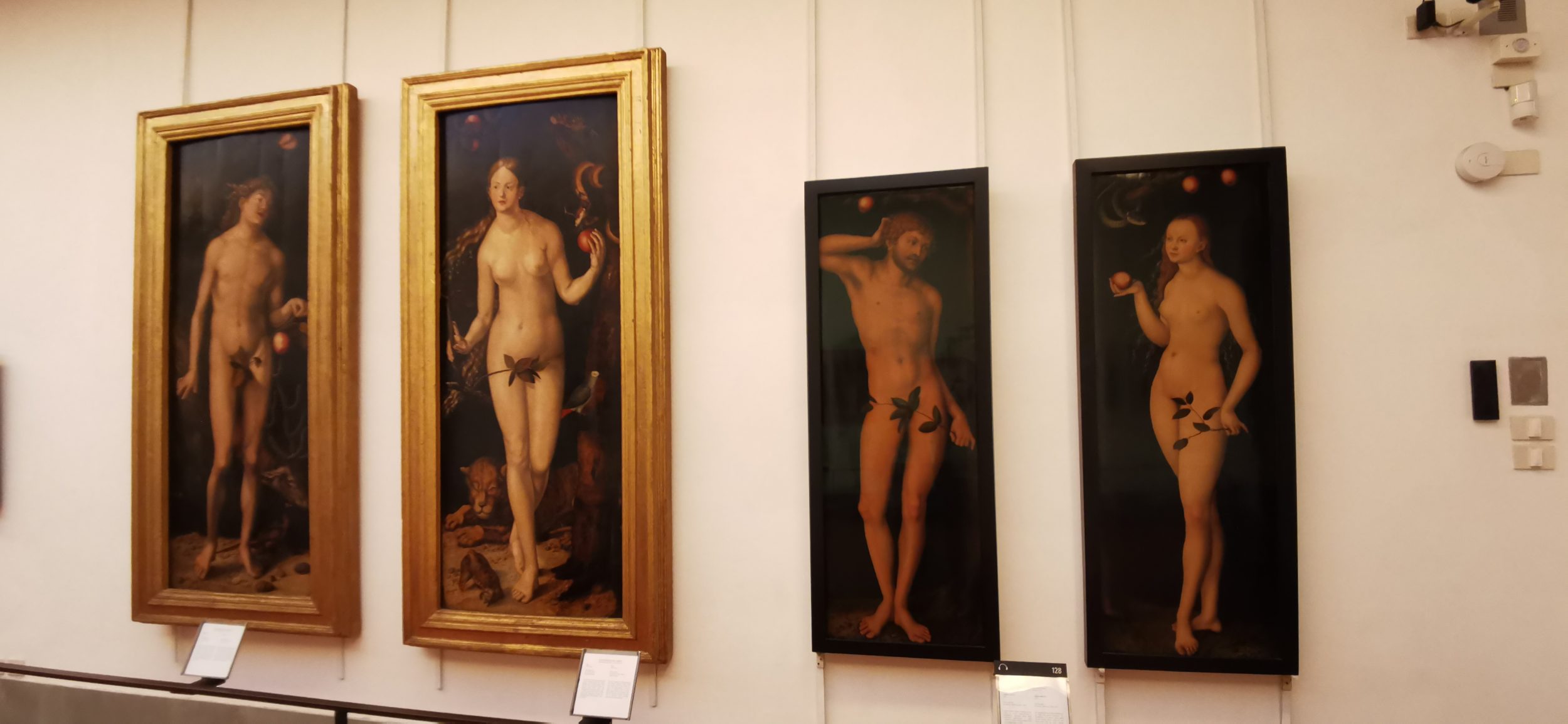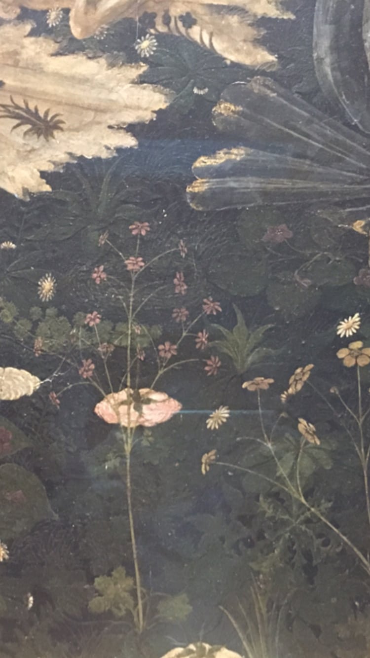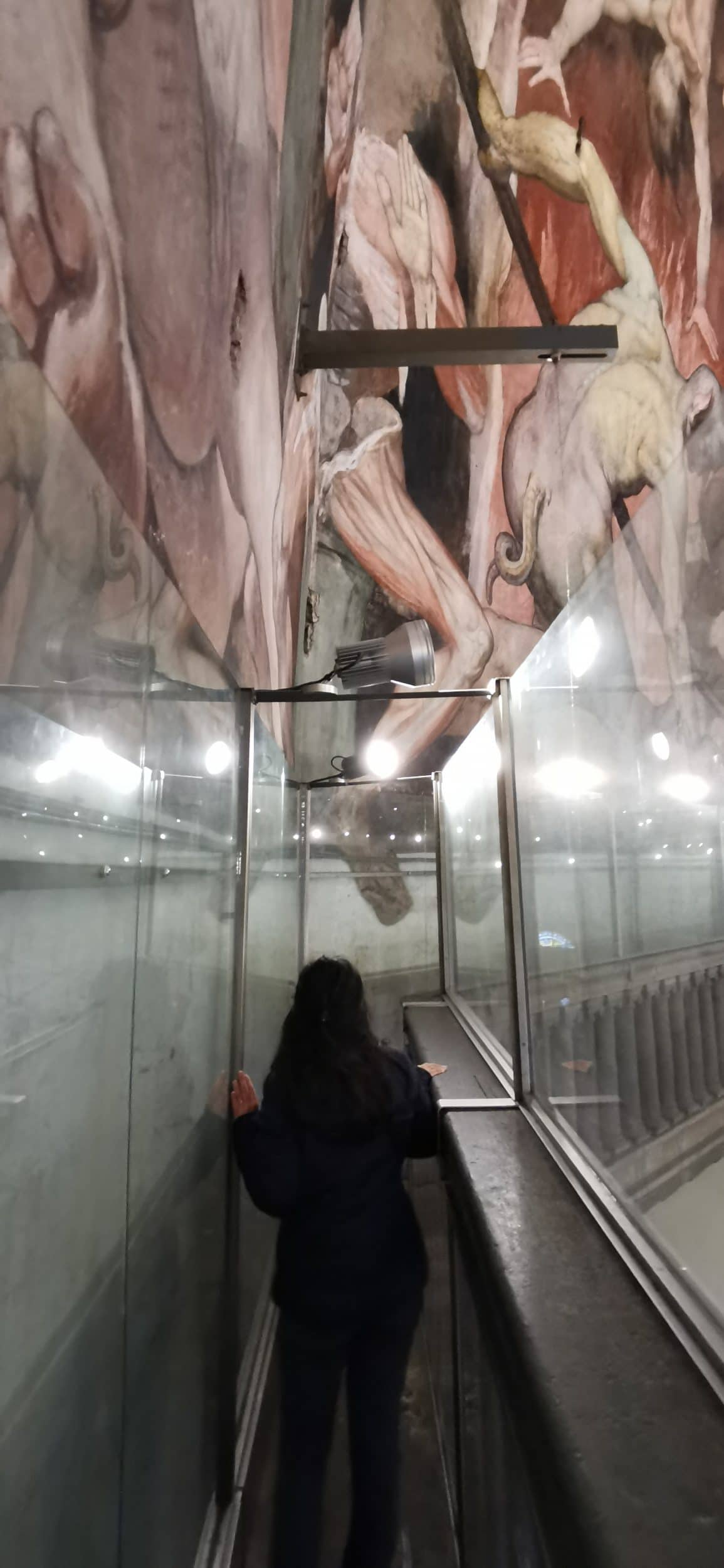 Aber wenn man so eine Decke hat, ist sie alle Angst der Welt wert, oder? Auf dem Weg nach draußen sind wir im Flur im Erdgeschoss. Aber auf dem Rückweg gehen wir den Flur im Obergeschoss entlang und sind direkt bei den untersten Zeichnungen. Es ist wirklich beeindruckend, wir erkennen ihre (riesige) Größe und die beeindruckenden Details der einzelnen Zeichnungen. Damit wir sie nicht beschädigen, sind die Zeichnungen in unserer Höhe natürlich mit Glas abgedeckt. Ich glaube, wir waren dem Paradies noch nie so nah 😀