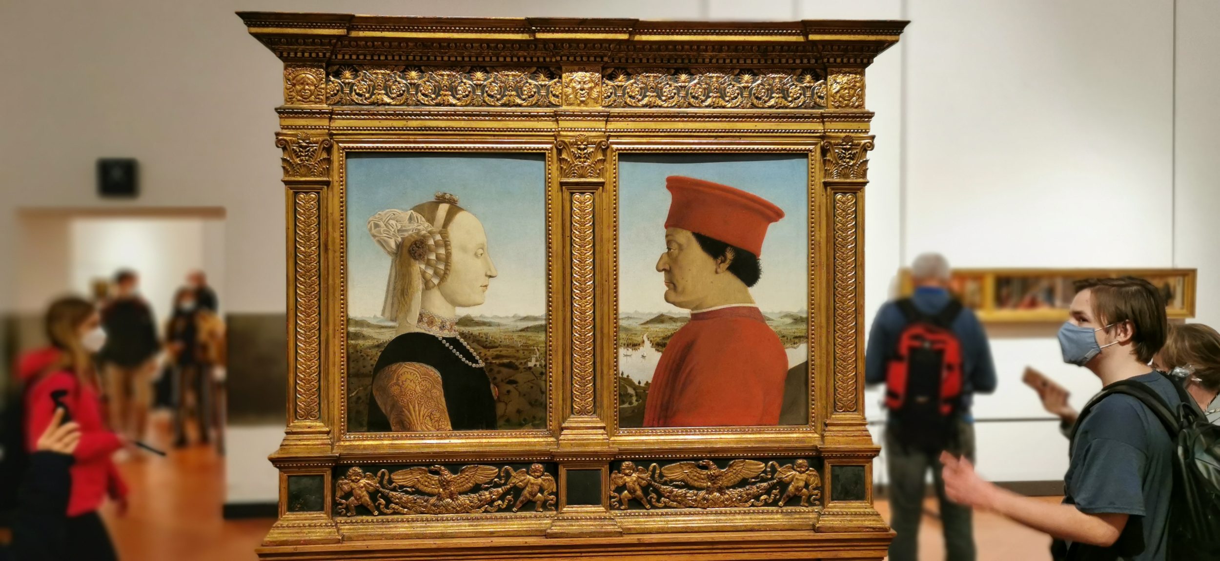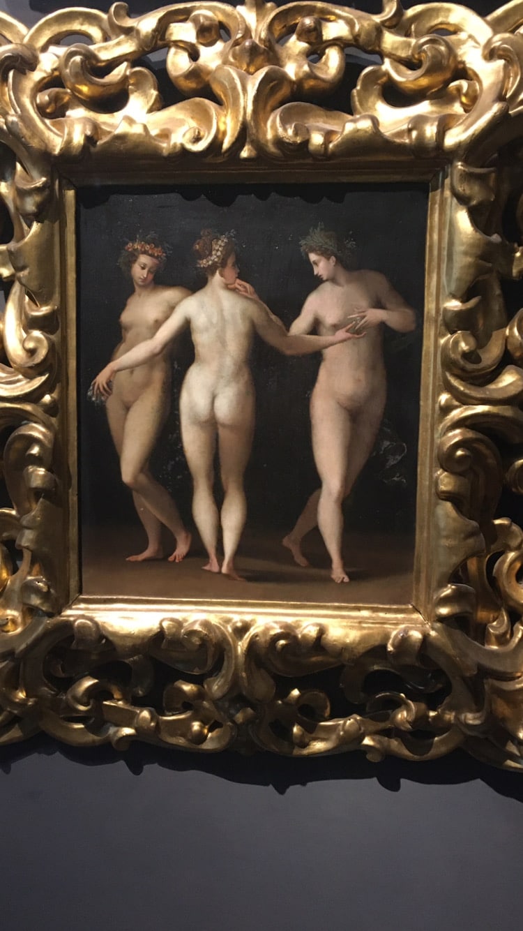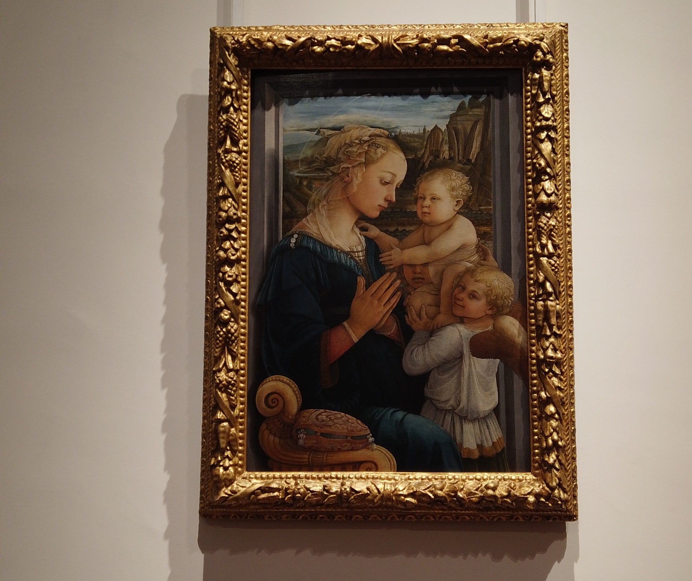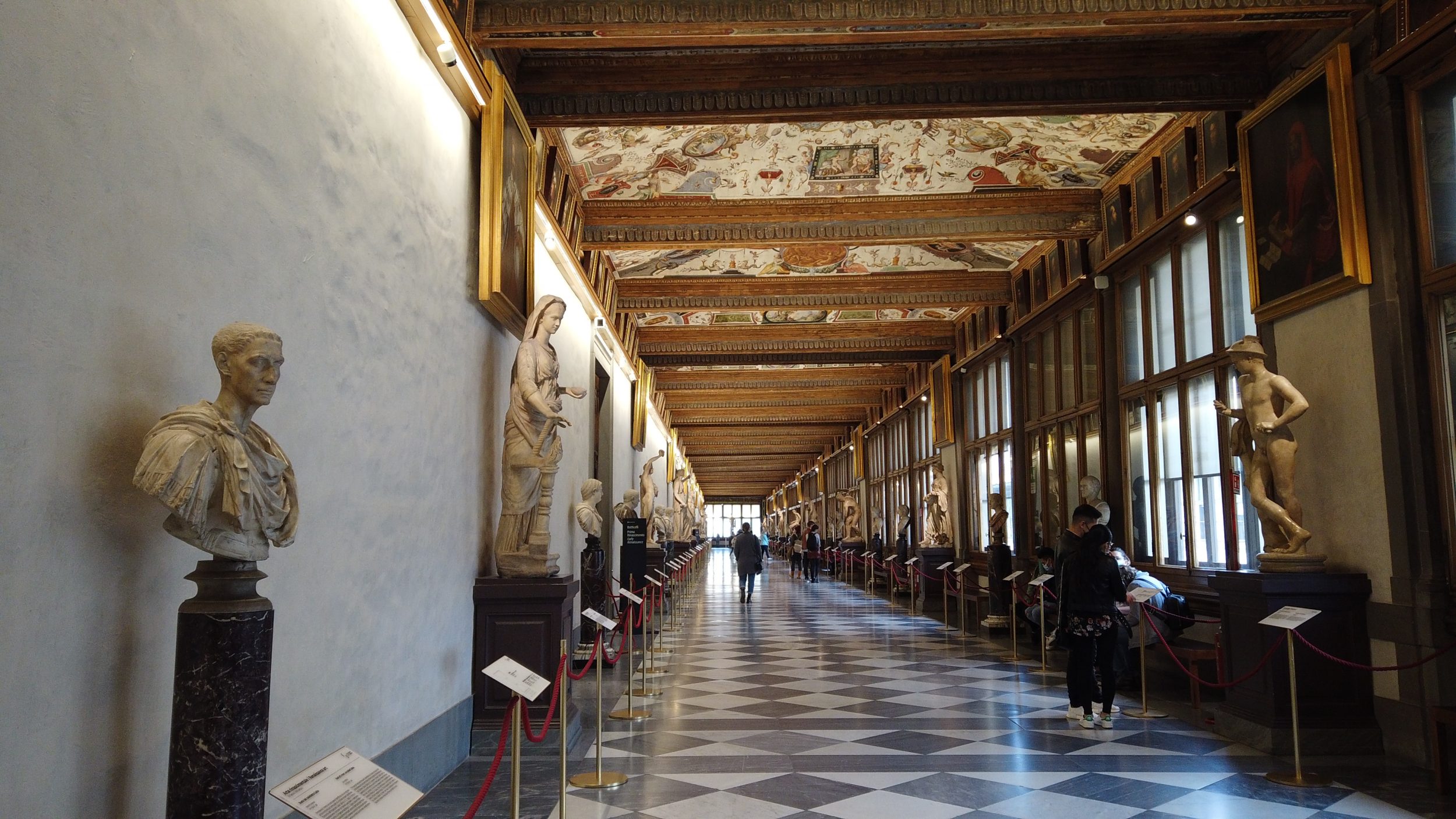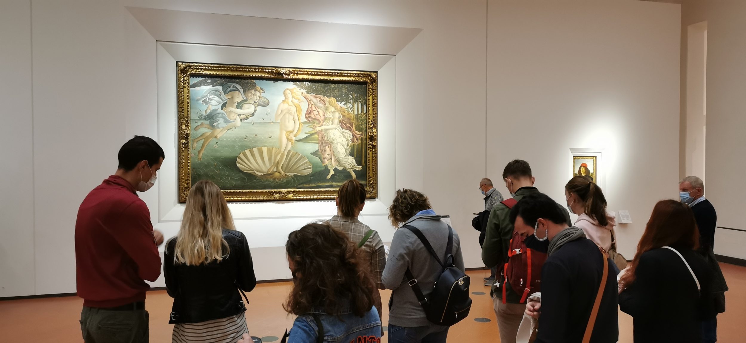 Natürlich sind die Gemälde von Botticelli ein Muss. Deshalb strömen die Touristen in Scharen zu ihnen und finden sich mitten im ersten Stock wieder. Die Leute fotografieren das Gemälde einfach aus der Ferne, etwa so…
