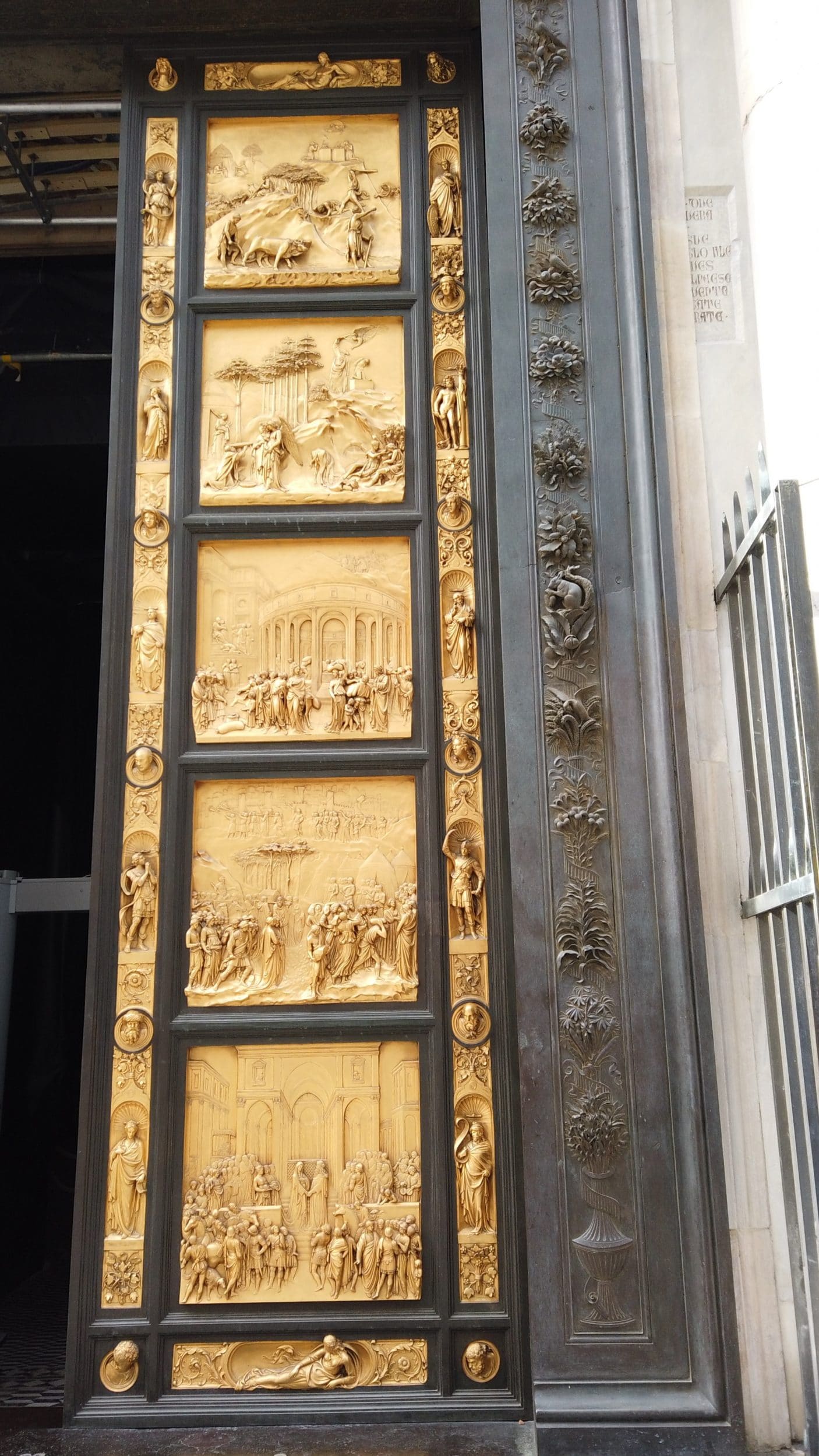 Sogar die Türen an der Außenseite, die aus Bronze gefertigt sind, sind wow, zögern Sie nicht, die Details zu betrachten. Ich glaube, das Haupttor heißt „Himmelstor“ oder so ähnlich. Nur dieses hier ist restauriert, die anderen sind alle grau und hässlich und niemand kümmert sich darum. So ungerecht!
