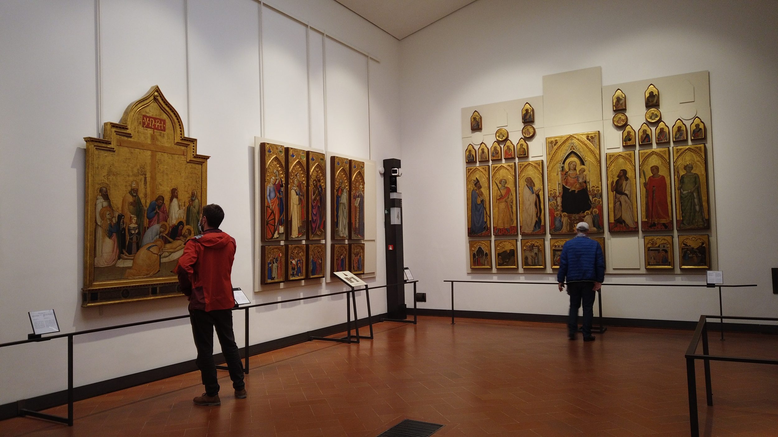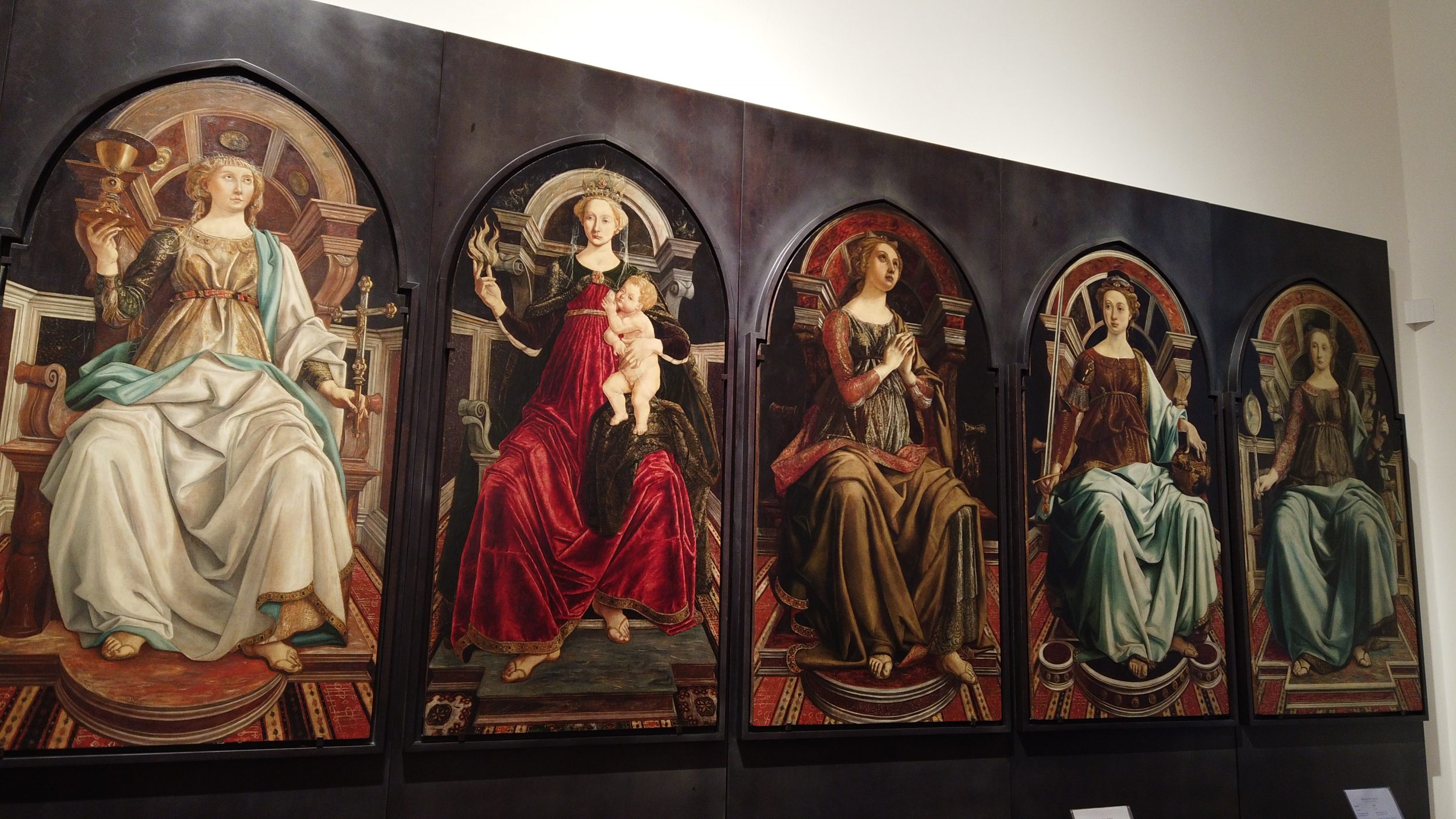 Der erste Teil ist der religiösen Kunst gewidmet, wobei die Madonna oft in Blau (blaues Pigment war auch zu dieser Zeit sehr teuer) und der Rest in Blattgold ausgeführt ist.