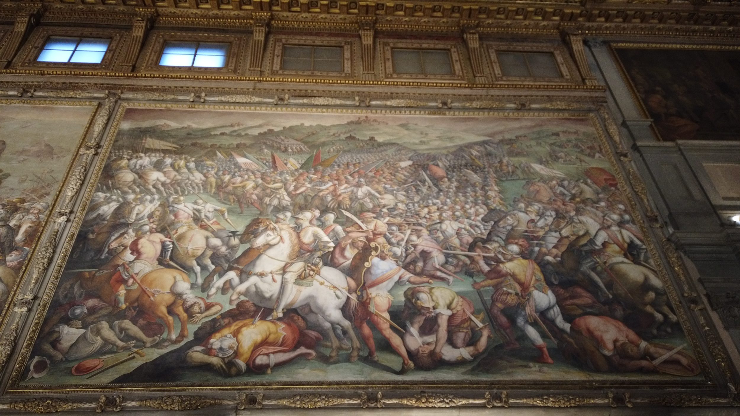 Die Wände des großen Raumes sind mit (schönen) Zeichnungen bedeckt. Leonardo da Vinci wurde beauftragt, diese Zeichnungen anzufertigen, aber er gab die Aufgabe bald auf. Einige haben seine Arbeit kopiert, aber die eigentliche Zeichnung existiert nicht mehr und ist durch die Arbeiten anderer Künstler völlig verdeckt. Ein kurzer Film erklärt diese Geschichte sehr gut.