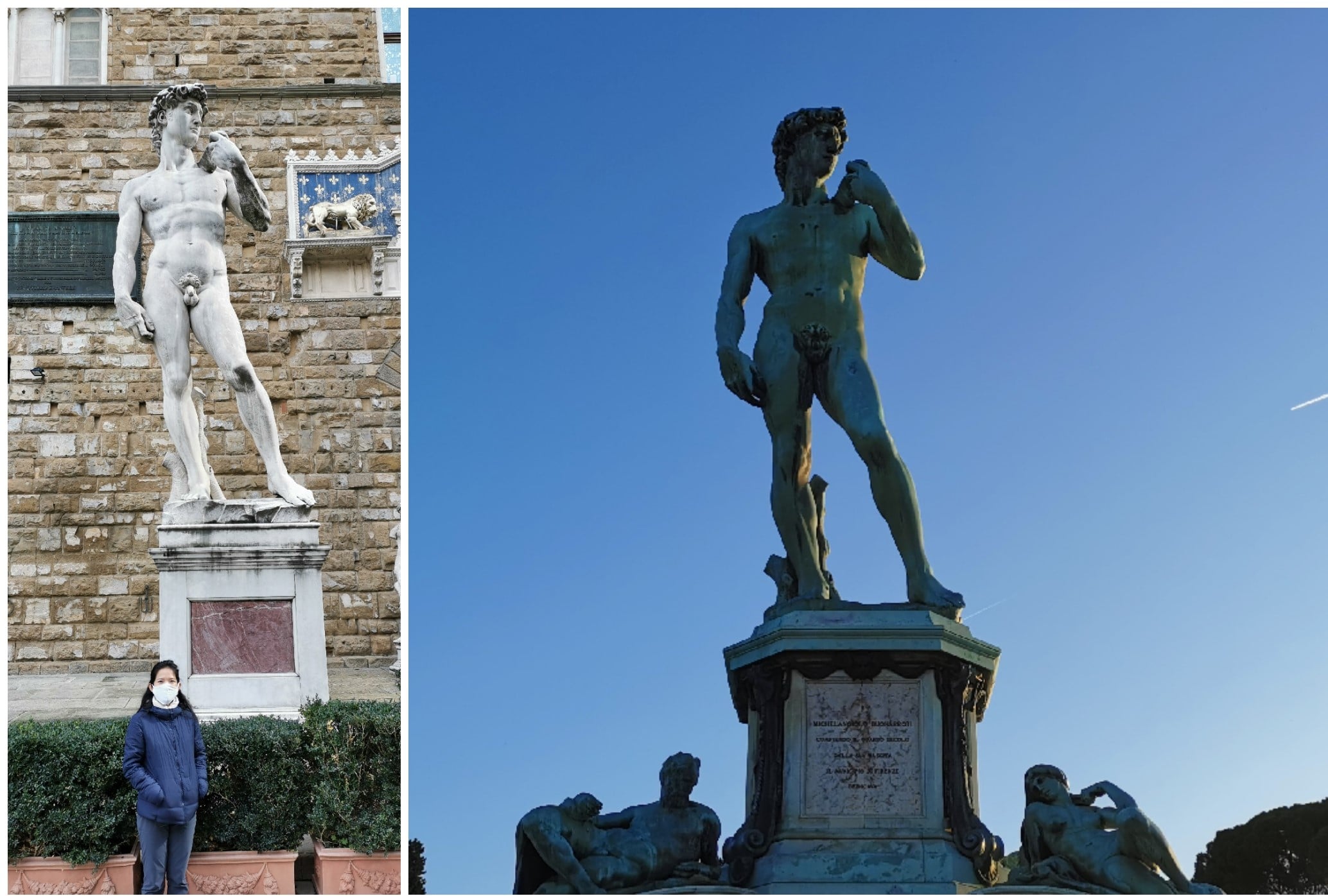 Die beiden anderen Davids befinden sich: einer direkt vor dem Palazzo Vecchio und der andere am Piazzale Michelangelo. Wenn man den echten gesehen hat, merkt man, dass die Kopien immer noch sehr gut sind.