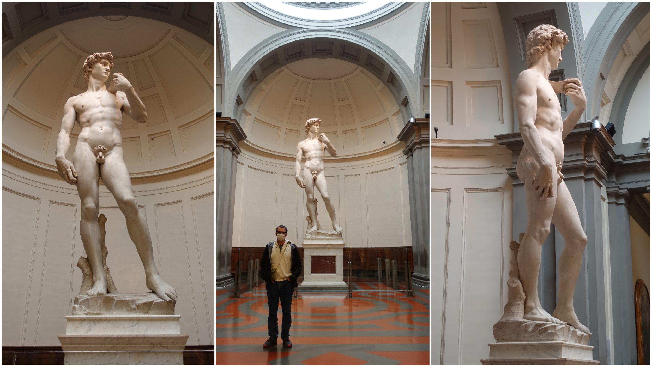 Wieder einmal sind wir fast allein auf der Welt und können den berühmten David aus jedem Winkel betrachten. Ich habe ein Bild mit JB eingestellt, damit Sie sehen können, wie groß es ist (von David, nicht von JB).