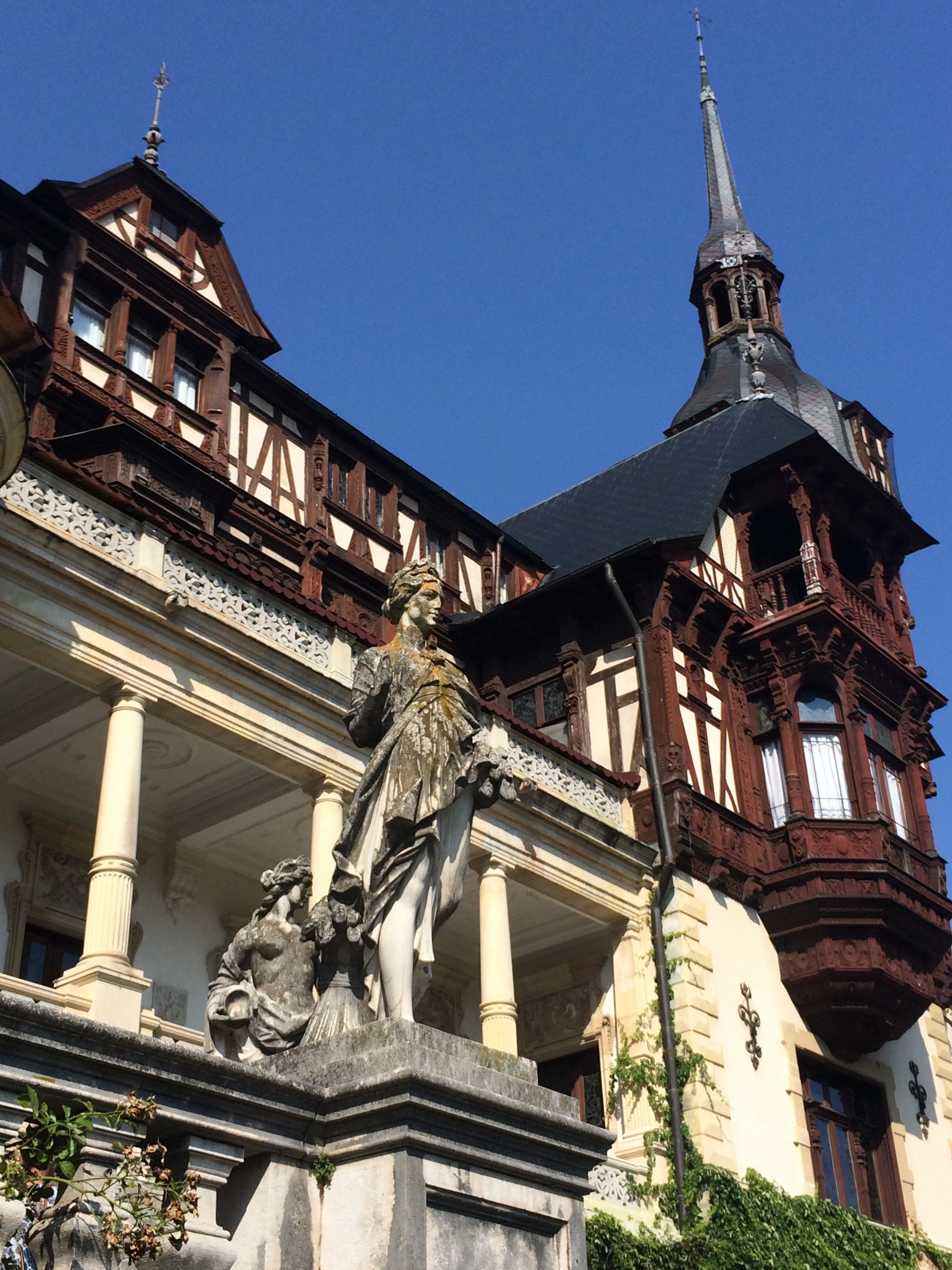 Schloss Peles ist die Sommerresidenz des 1. Königs von Rumänien. Es ist sehr schön und vor allem modern: von Anfang an mit Strom, einer Heizung, fließendem (und heißem) Wasser ausgestattet. Für den rumänischen Stil werden wir eh andere Sachen besichtigen, denn dieser ist im deutschen Stil gebaut