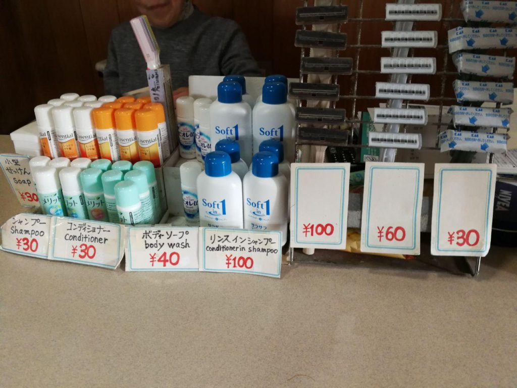 Seife und Shampoo sind nicht inbegriffen, Sie können sie für 40 bzw. 30 Yen kaufen.